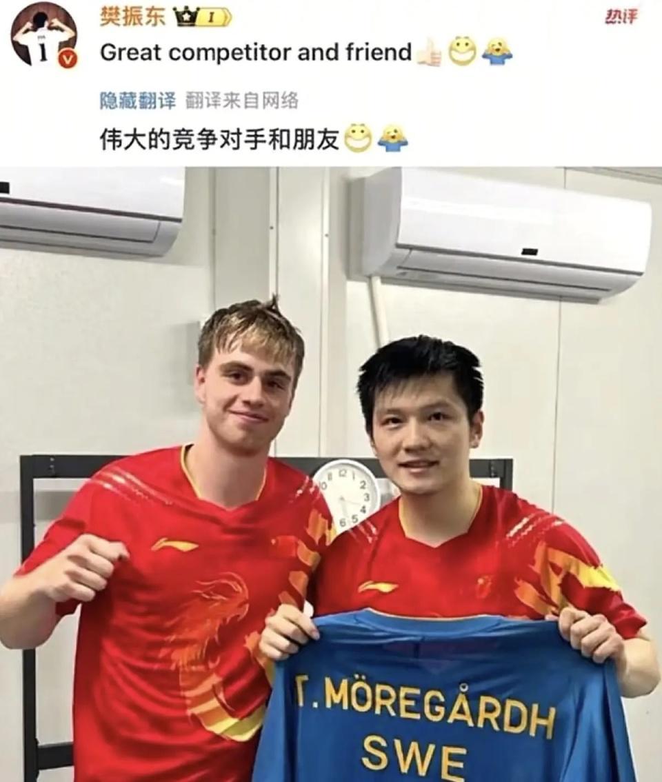巴黎奥运会男单决赛,樊振东击败莫雷加德,夺得金牌,成就和超级全满贯,小莫则获得银牌,两个人惺惺相惜,彼此非常尊重。